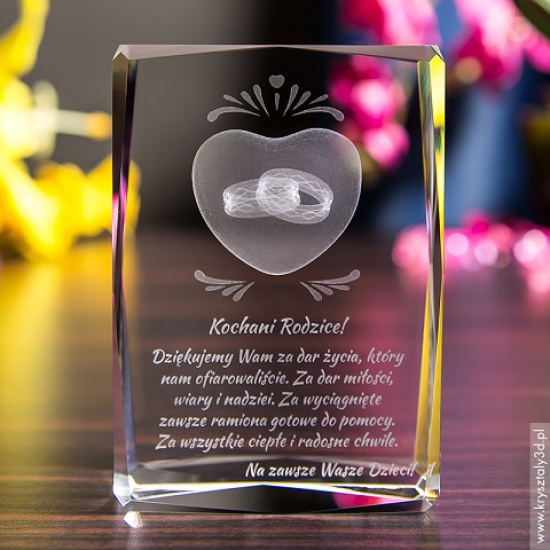 Podziękowanie dla rodziców - Kryształ 3D Obrączki Miłości!