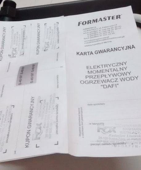 przepływowy elektryczny ogrzewacz DAFI